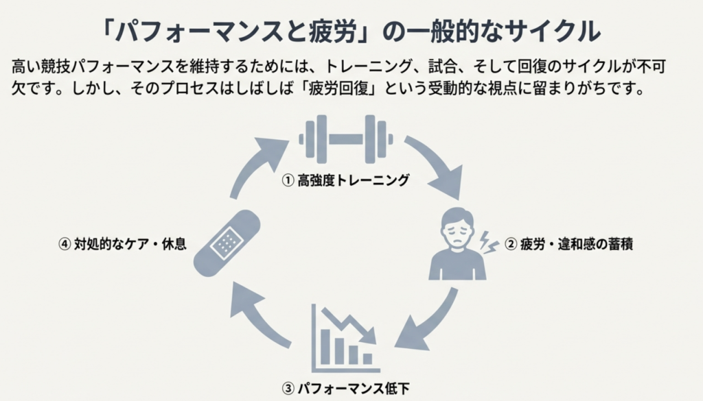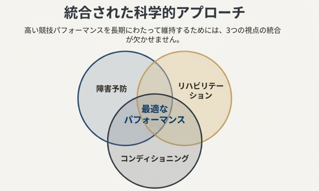 高い競技パフォーマンスを長期にわたって維持するためには、トレーニングそのもの以上に、身体をいかに守り、回復させ、再び動ける状態へ戻すかという視点が欠かせません。障害予防、リハビリテーション、そして日常的なコンディショニングを統合したケアセッションは、単なる疲労回復の場ではなく、選手の身体を「次のパフォーマンスに耐えうる状態」へ再構築する重要なプロセスです。